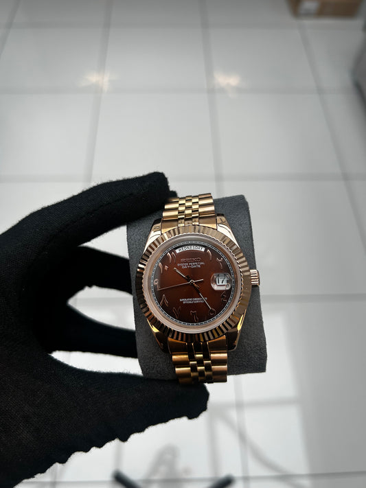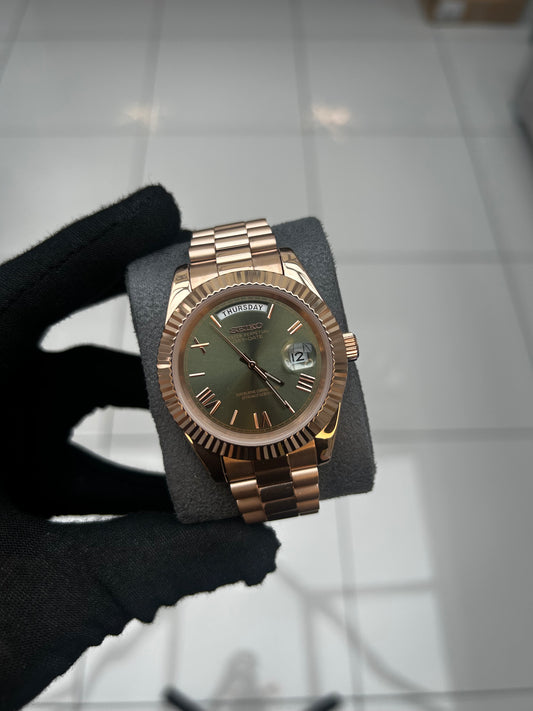 Inspired by the timeless Rolex Day Date, this high-end custom Seiko mod blends elegance with reliability. Featuring the prestigious Miyota 8285 automatic movement.