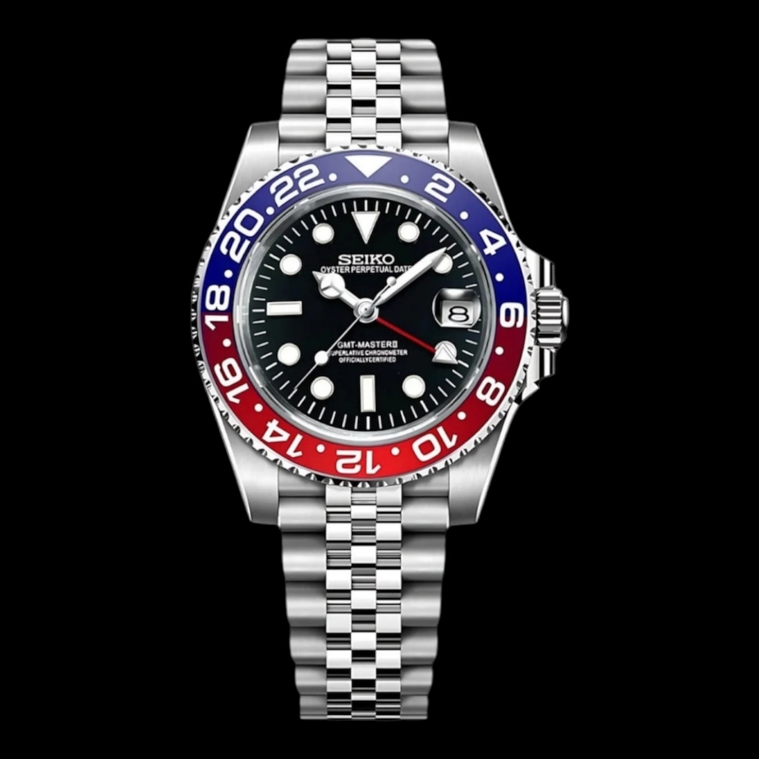 Taking inspiration from the Legendary GMT Design and incorporating the highly-regarded Seiko NH34 automatic movement, we introduce the Seiko Mod GMT. This 40 mm luxury watch strikes the ideal balance between superior quality and affordability.