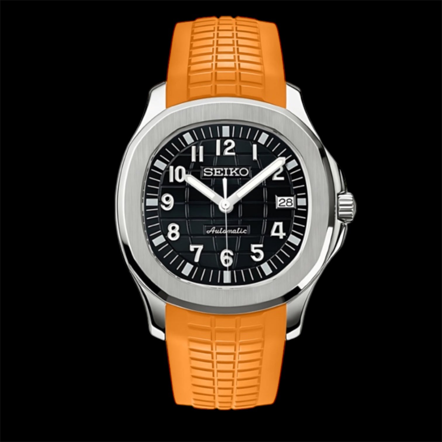 Inspired by the iconic Aquanaut design, and featuring the prestigious Seiko NH35 automatic movement, we present the Seiko Mod Aquanaut. A 41 mm high-end quality watch combining the perfect alliance between excellence and accessibility.